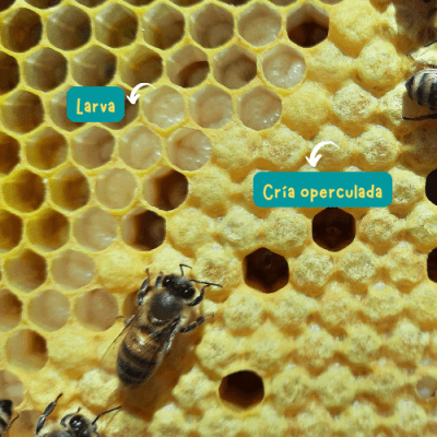 Sabías que todos los huevitos fértiles que pone la Reina pueden ser reinas? De los huevitos nace una larvita que es alimentada por las abejas jóvenes (nodrizas), con una sustancia que secretan unas glándulas de su cuerpo (Jalea Real), los tres primeros días y luego con una papilla de miel y polen. Esta larvita se convertirá en Obrera, si no se cambia la dieta a esta papilla y solamente se le alimenta con Jalea Real la larvita se convertirá en Reina.
